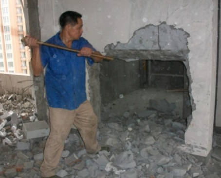2、拆墻的方案定好了之后,步需要切斷所有電源,關(guān)閉天然氣閥門。人工手動拆除應(yīng)該按照從上到下這張順序,一層一層的進行拆除,不能幾層同時拆除。不能垂直或交叉拆除。拆除面的孔洞需要封閉。當(dāng)拆除掉一部分之后,應(yīng)當(dāng)時間采取加固措施,防止其他部分塌下來。